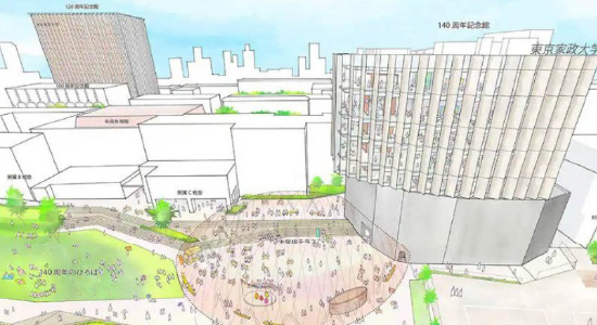 学生ファーストの環境整備として、140周年記念館が2026年に竣工予定です。学生の集いと出会いの場「ドームの大屋根テラス」、歴史と伝統を担う「博物館」、未来への新たな学びと研究の姿をつくる「デジタルトランスフォーメーション(DX)強化の拠点」という三つの要素からなり、「コミュニケーションのハブ」として、人と人、人とモノ、人とコト、人と学びなど、交流の結節点となります。